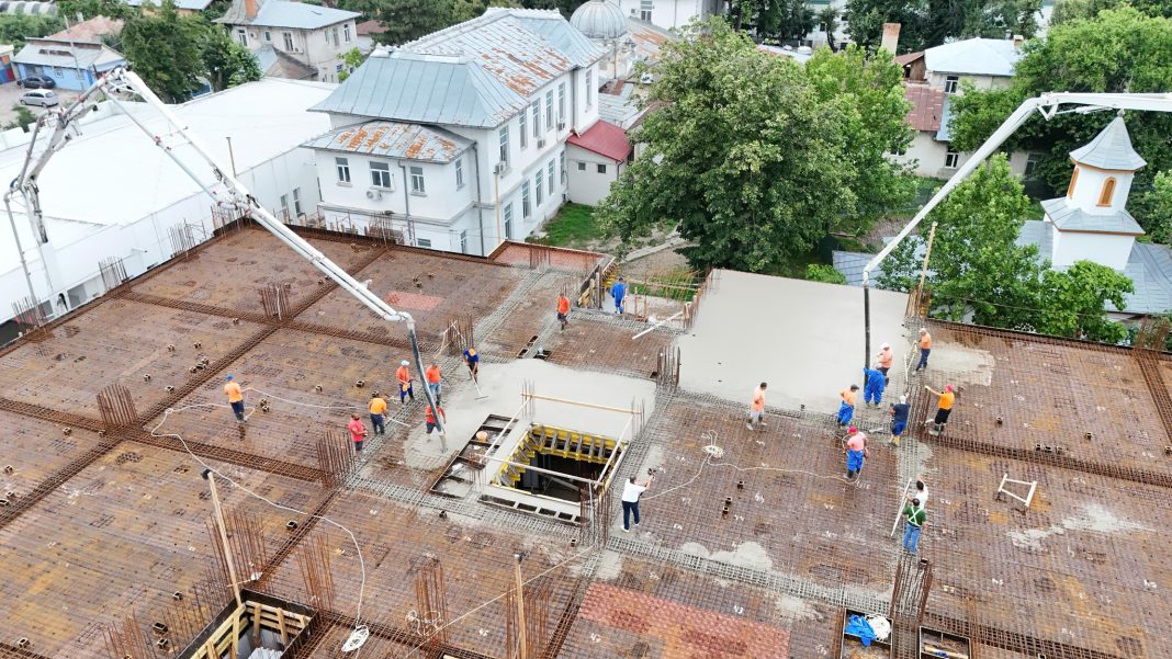 Lucrările la spitalul aflat în construcție în Tecuci continuă: a fost demarată turnarea a 500 de metri cubi de beton pentru realizarea structurii celui de-al doilea etaj, ce va ocupa o suprafață de 2.300 mp.