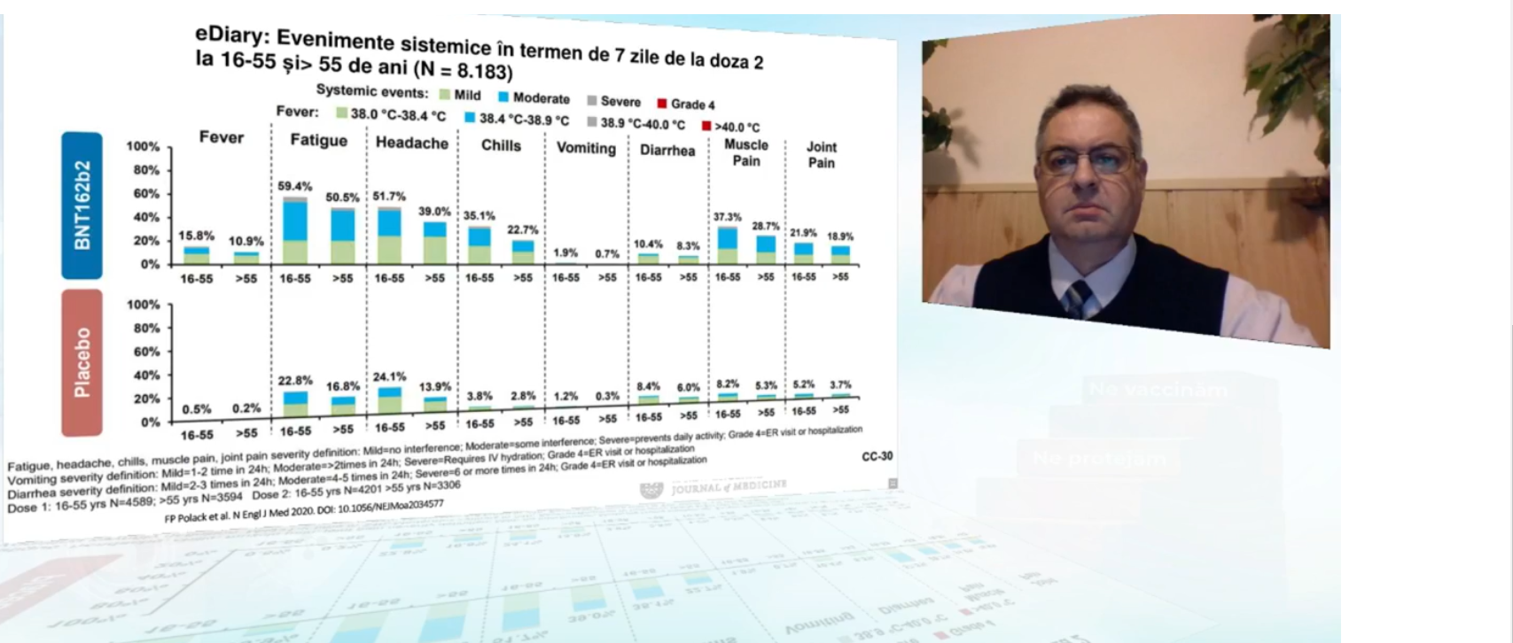 „Putem să vorbim în acest moment, atât despre siguranță, cât și despre eficacitatea vaccinului. Atât la doza unu, cât și la a doua doză, în majoritatea cazurilor s-a înregistrat doar durere la locul injectării. Au fost înregistrate și câteva cazuri de febră, dureri de cap sau amețeală. Cele mai multe reacții adverse au fost ușoare.