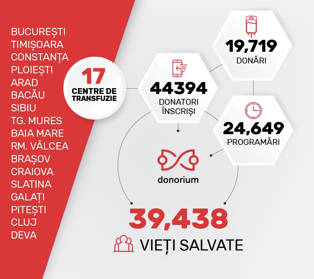 În perioada campaniei, centrele de transfuzie partenere Donorium au beneficiat atât de un flux de donare constant și organizat, cât și de posibilitate de a anunța în timp real cei aproximativ 45.000 de donatori înscriși în aplicație despre criza de sânge prin care trece sistemul sanitar de urgență.