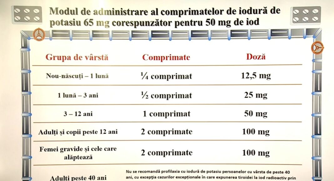 ”Administrarea de comprimate sau pastile de iodură de potasiu trebuie făcută în cazul unei urgențe doar la indicația autorităților. Nu trebuie luate în niciun caz înainte în mod preventiv și doar dacă există un astfel de anunț public că aceste pastile ar trebui luate, dacă există în proximitatea României un incident nuclear, iar acest incident se soldează și cu creșterea nivelului de radiații în România și există iod radioactive în cadrul acestei radiații, altfel nu trebuie luate”, a precizat ministrul în cadrul unei conferințe de presă de marți de la Ministerul Sănătății.