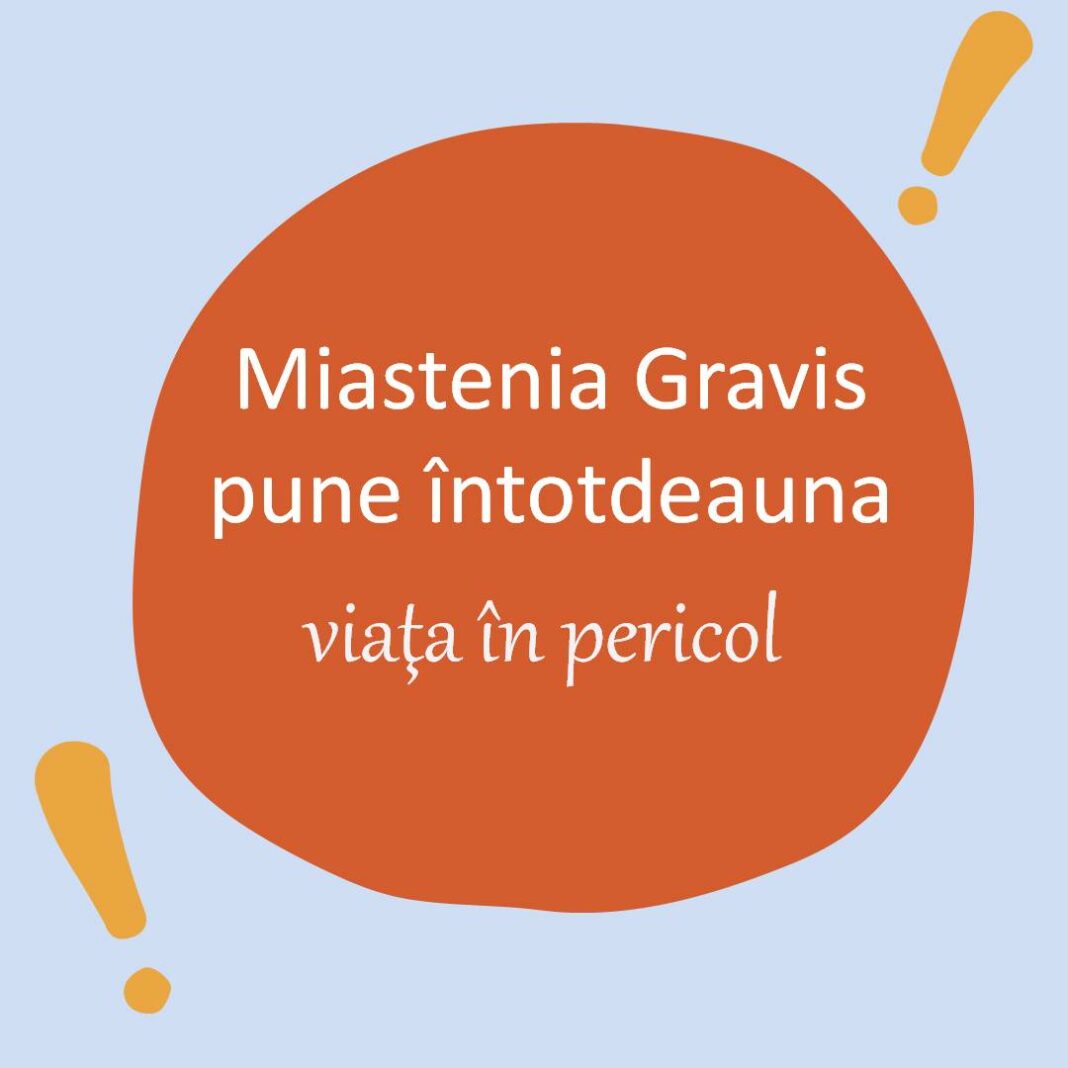 Potrivit site-ului asociației amintite, Miastenia Gravis este o boală autoimună neuromusculară gravă, rară și cronică, care poate provoca slăbiciune musculară debilitantă sau pune viața pacienților în pericol; altfel spus, apărarea naturală a organismului nu funcționează așa cum ar trebui și adesea se manifestă mai întâi la nivelul feței, prin pleoape căzute – unul din simptomele timpurii.
