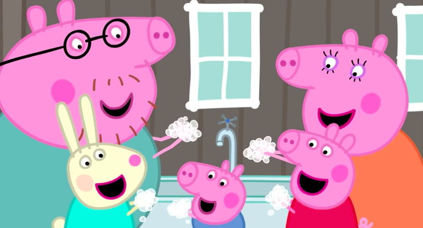 Peppa, împreună cu Rebecca Rabbit și Mr. Badger cântă „Wash Wash Wash Your Hands” în timp ce le demonstrează copiilor cum să-și igienizeze corect mâinile.
