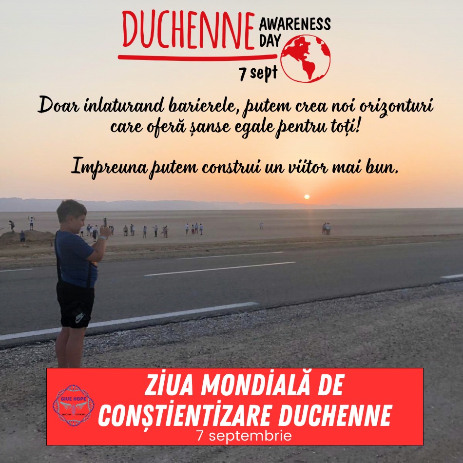 Ziua Mondială a Conștientizării Duchenne cade pe 7 septembrie a fiecărui an. În această zi, Parent Project Romania se alătură comunității internaționale Duchenne pentru a crește atenția și conștientizarea asupra efectelor bolii. Acțiunile mici, acțiunile dezinteresate, acțiunile deliberate creează un efect de undă