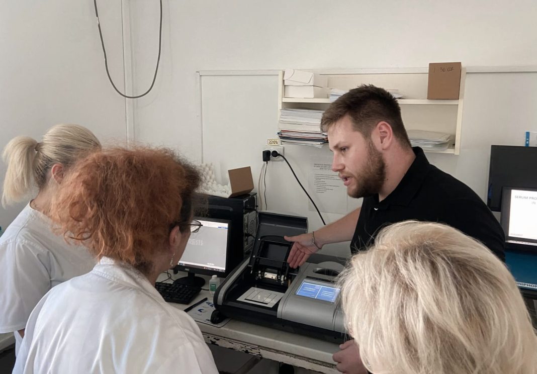 • Un analizor automat de electroforeză, util pentru depistarea timpurie a bolilor de sânge, hepatice sau renale.