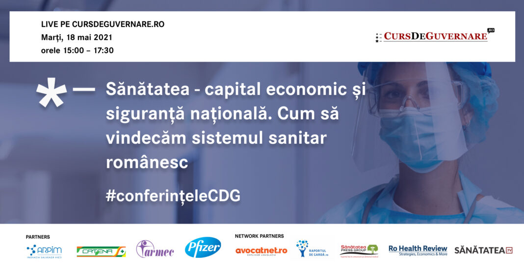 Conferința ”Sănătatea – capital economic și siguranță națională. Cum să vindecăm sistemul sanitar românesc” se va desfășura marți, 18 mai, în sistem online.